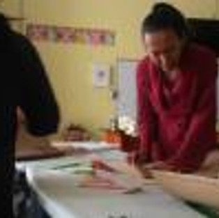 Trabajando en el aula los dibujos de las observaciones. La técnica con que se trabajó fue pastel